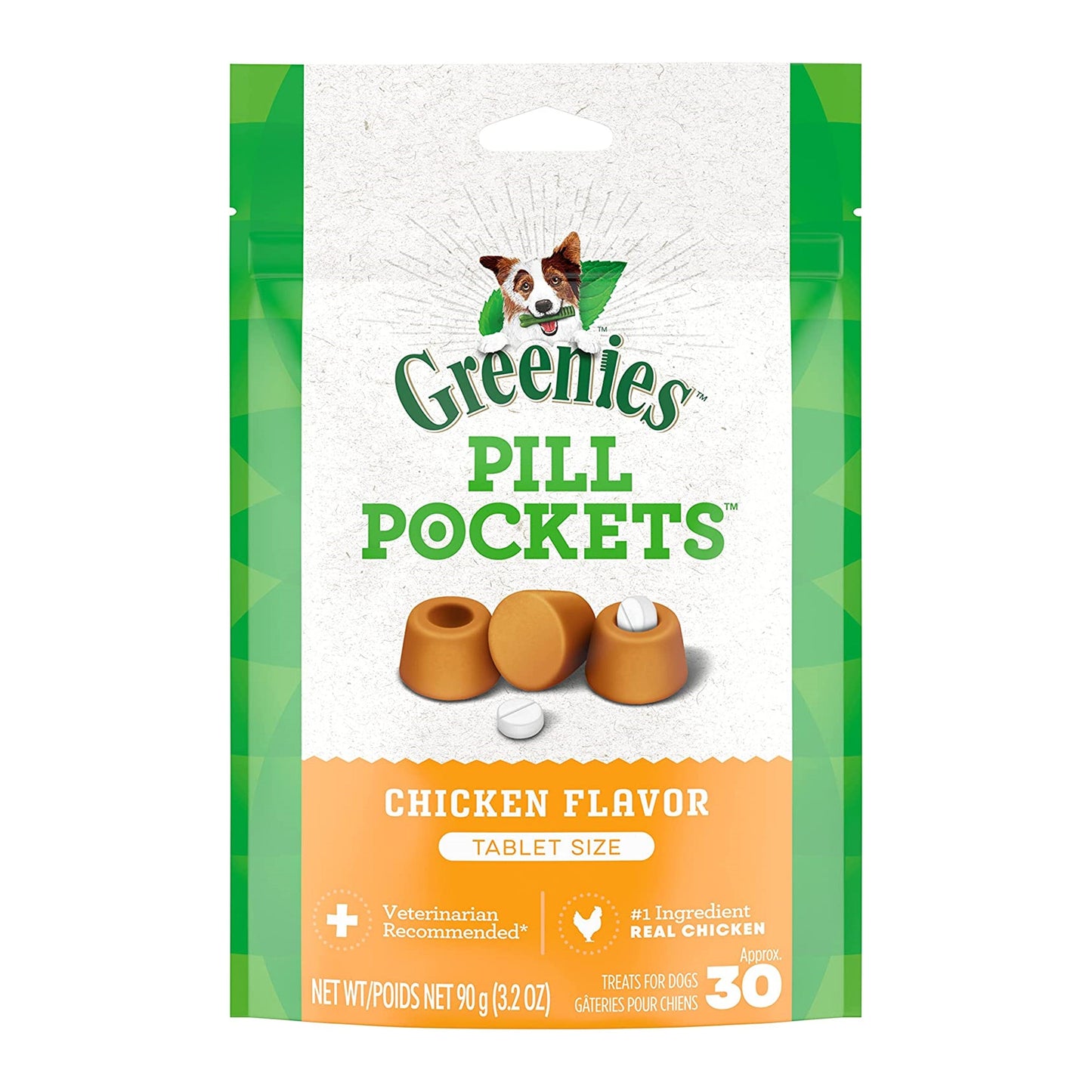 You don't have to trick your dog into being healthy and happy. Pick up GREENIES PILL POCKETS Treats for Dogs and give them their medicine in a tasty chicken-flavored treat. These vet recommended pill pockets are perfectly designed to hide medicine tablets while masking their smell and taste. You'll be almost as happy as your pet once they chow down on this healthy, low-calorie treat. Outsmart your pup and pick up a pouch today