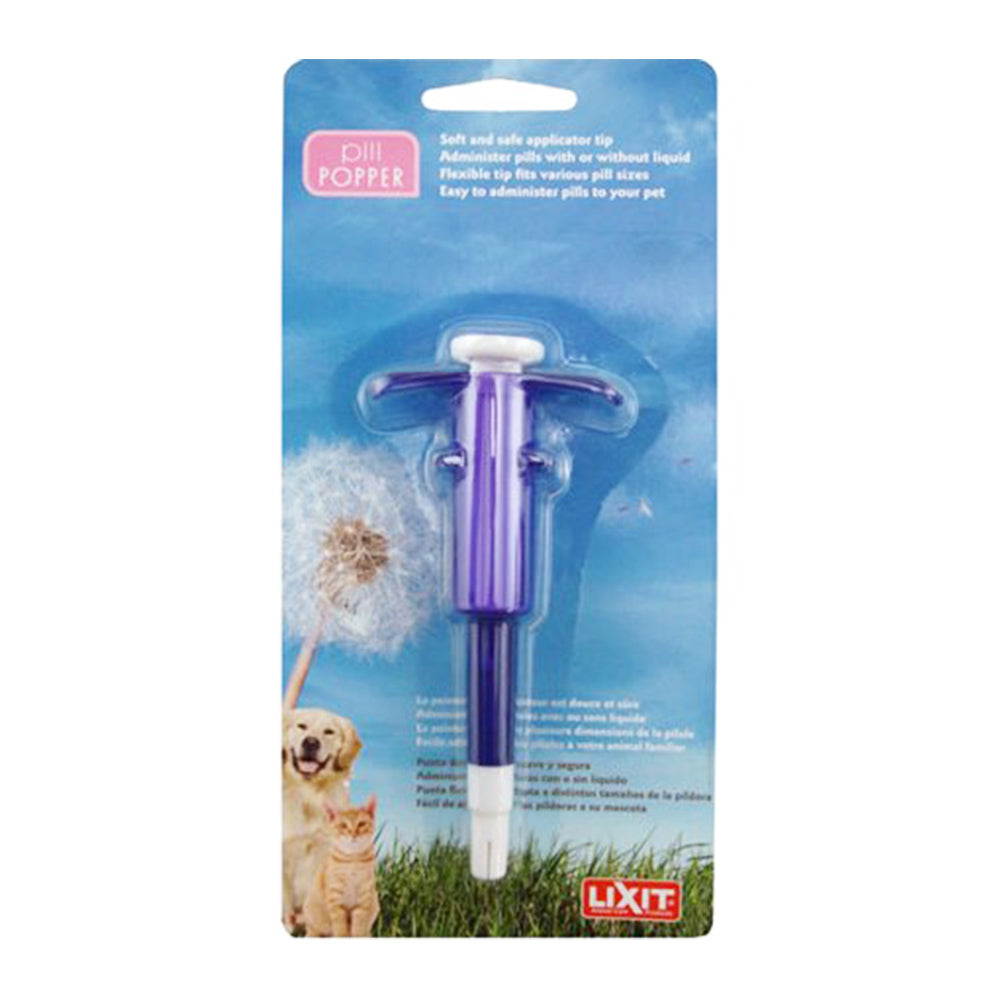 Make medicine time a little less challenging with the Lixit Pill Popper. Because many pets have trouble taking their pills, this tool makes it easy to administer their daily dose. With a unique design that can be used dry or wet, the soft and safe applicator tip is flexible enough to fit various pills sizes. For dry use, simply pull back the plunger, insert the pill, and press the plunger to eject the pill towards the back of their throat. For wet use, place the popper into milk or water with the plunger depressed, pull back the plunger, and then follow the same dry steps.