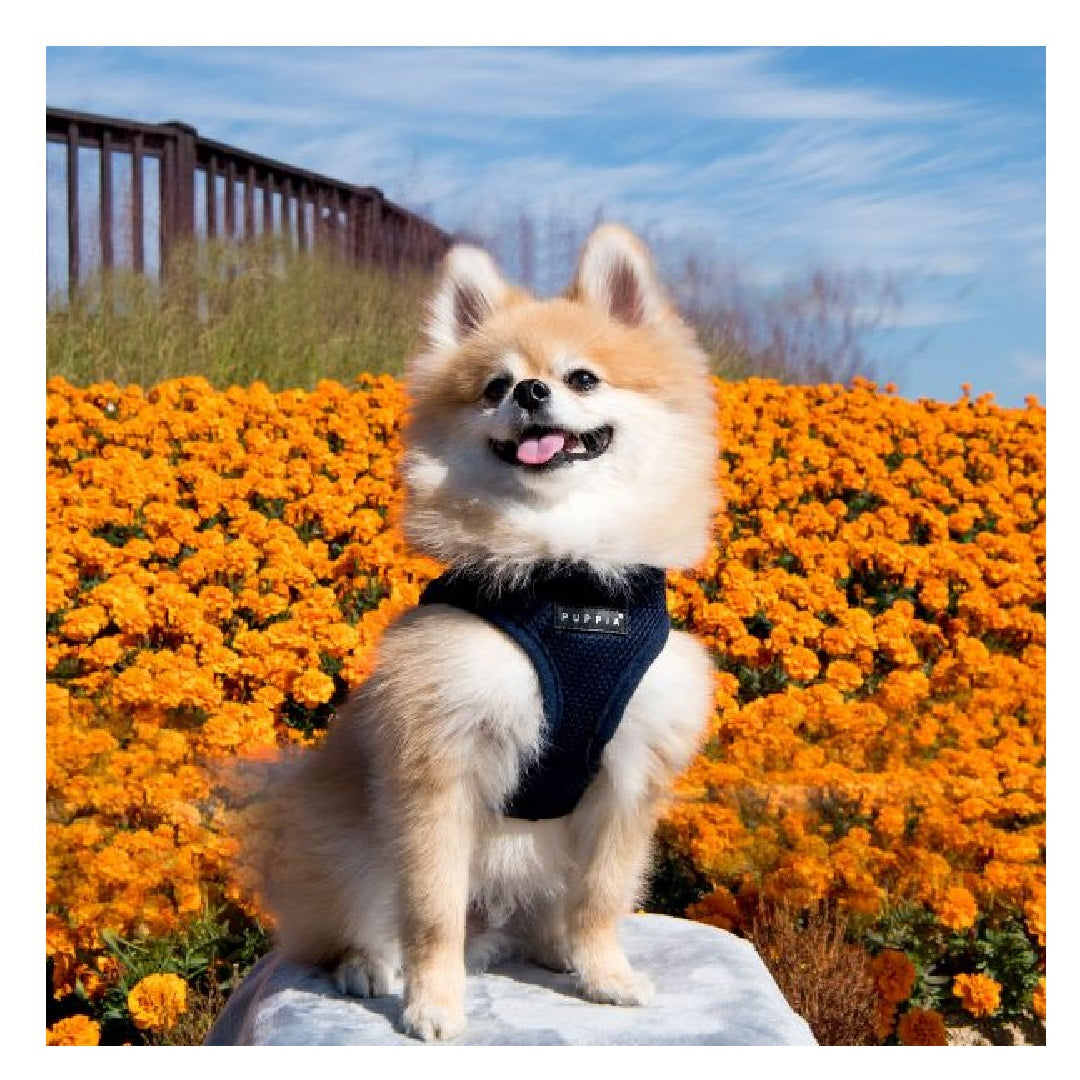 Puppia design gives your dog a modern and comfortable way to walk, run and play. Our harness is designed to make walks easier for you and your four-legged friend. By attaching your leash to the loop behind your harness, you have more control over your dog. This is more comfortable for your friend as his body reacts and stops to the movement rather than his neck.