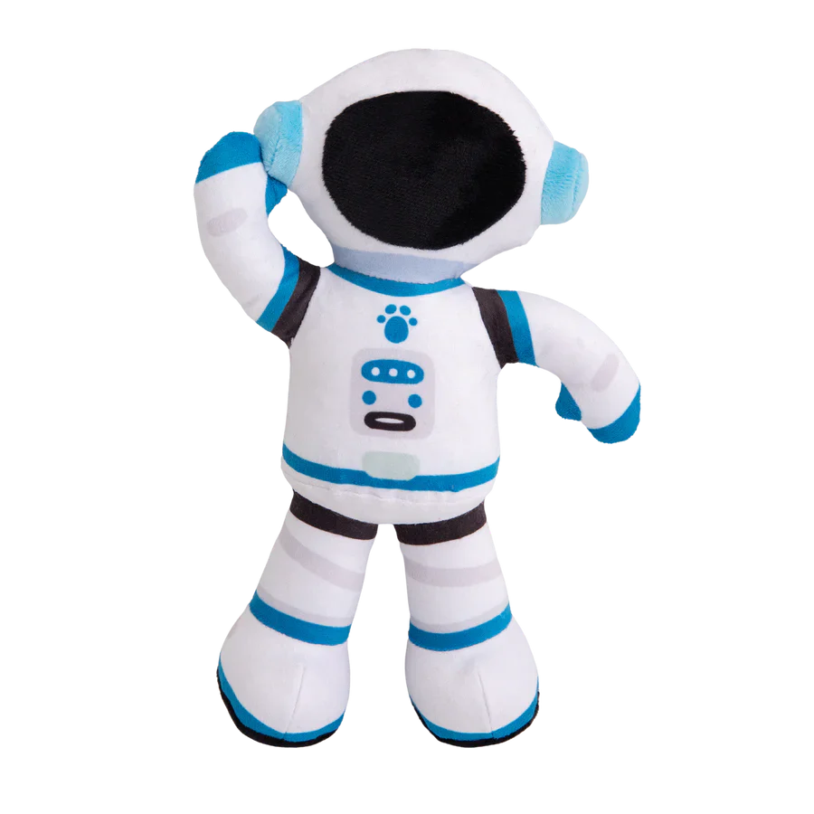 Take your beloved pet's playtime to stellar new heights with Apollo the Astronaut, a toy that's out of this world! Set your pup off on an enthralling space odyssey with this environmentally conscious playmate, meticulously crafted from recycled water bottles. Apollo comes alive with exciting sounds, featuring an integrated squeaker and enticing crinkle material for a galaxy of interactive fun. Measuring an impressive 10 inches, this toy is perfectly sized for an epic cosmic journey, promising hours of adventurous and sustainable play. Prepare for a universe of enjoyment as your furry friend explores the final frontier with Apollo the Astronaut! 11 x4"x1.5".